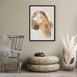 - poszter egy nő visszafogott portréját ábrázolja, akinek arcát virágok takarják. A meleg színek és a finom kompozíció harmóniát és eleganciát visz a belső térbe. A poszterhez fekete keret tartozik.