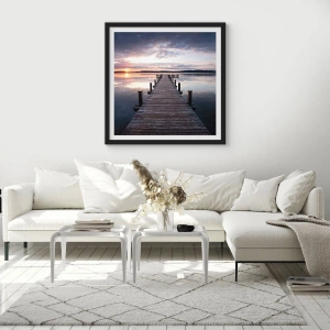 A kompozíció domináns eleme egy egyszerű, fahíd, amely a nézőt a végtelen horizont felé vezeti. A víz tükröződése hűen reprodukálja a pasztellszínekkel és finom felhőkkel teli eget, amelyek romantikus hangulatot teremtenek. A nyomat természetes esztétikája tökéletes választássá teszi a minimalizmus és az egyszerűség kedvelőinek.