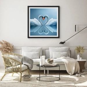 - Ez a poszter két hattyút ábrázol, amint szív alakot alkotnak nyugodt vízen, kék háttérrel. Tökéletes romantikus és elegáns enteriőrökbe. A termékhez egy fekete, 50x70 cm-es keret tartozik.
