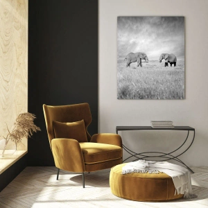 - Két fenséges elefánt a szavannán fekete és fehér árnyalatokban. Egy finom természeti motívum, amely harmóniát és eleganciát visz a belső térbe.