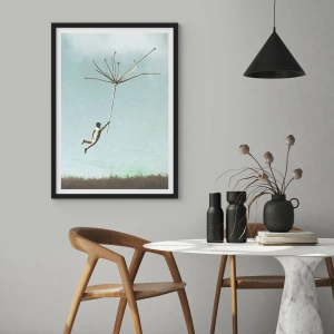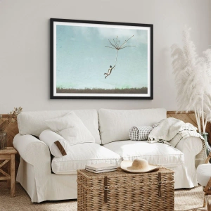 Poszter fehér keretben - Sárkányrepülők, pitypangok, szél - 61x91 cm