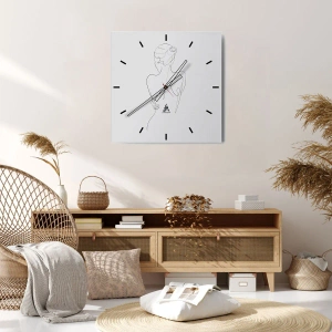 Falióra, Óra - Női sziluett finom vonala fehér alapon - 30x30cm - Testzene - Modern fali dekoráció nappalihoz, konyhához és hálószobához ARTTOR