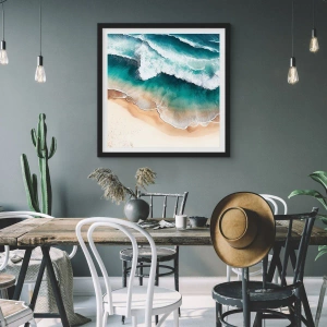 - A poszter gyönyörű, homokos tengerpartra csapódó tengerhullámokat ábrázol. A kék és bézs finom árnyalatai harmonikus kompozíciót alkotnak, amely a pihentető, friss és tengerparti hangulatot árasztja a belső térben.