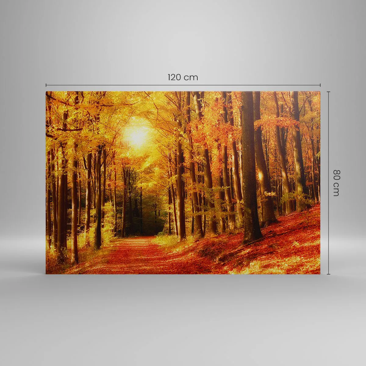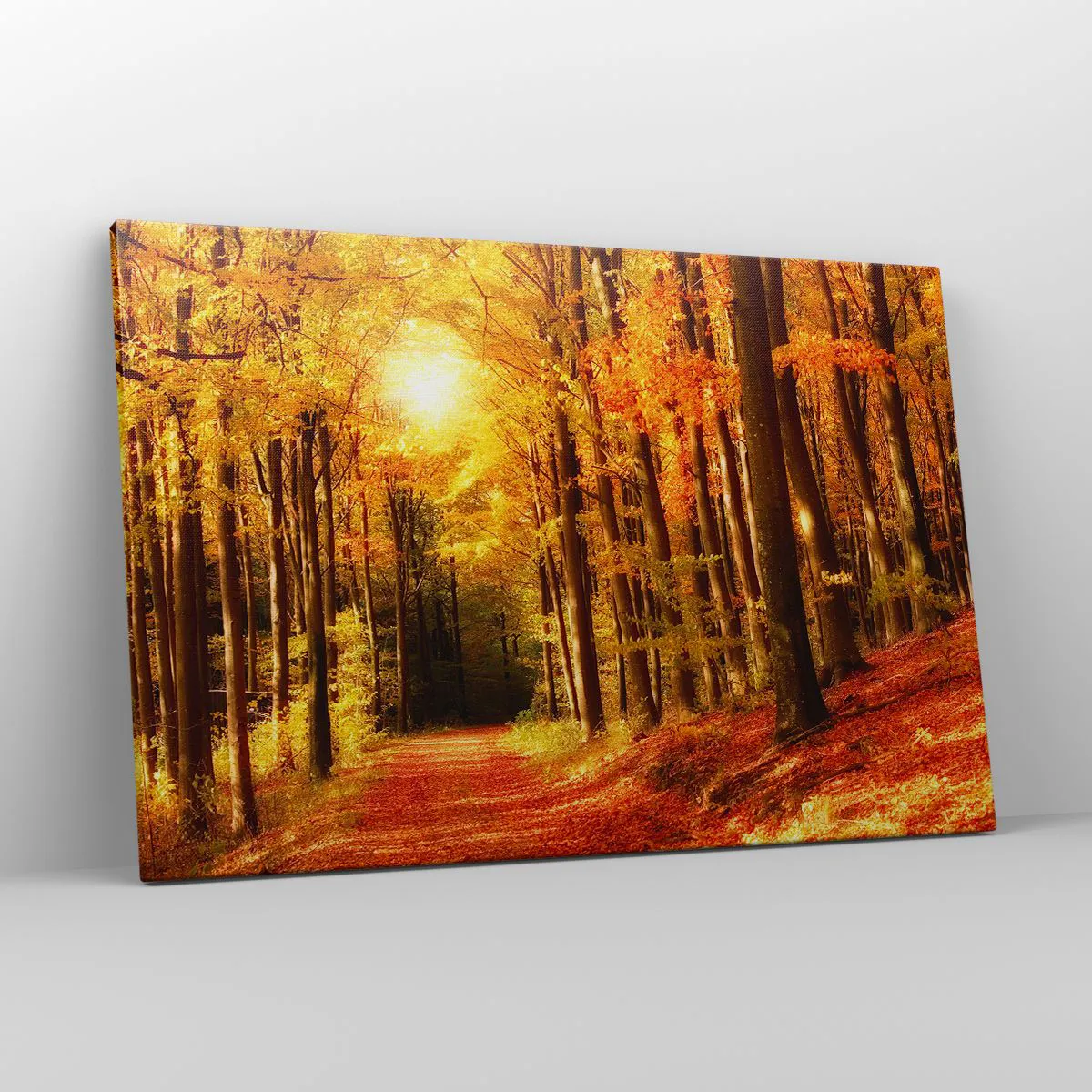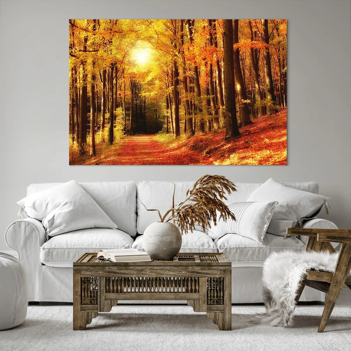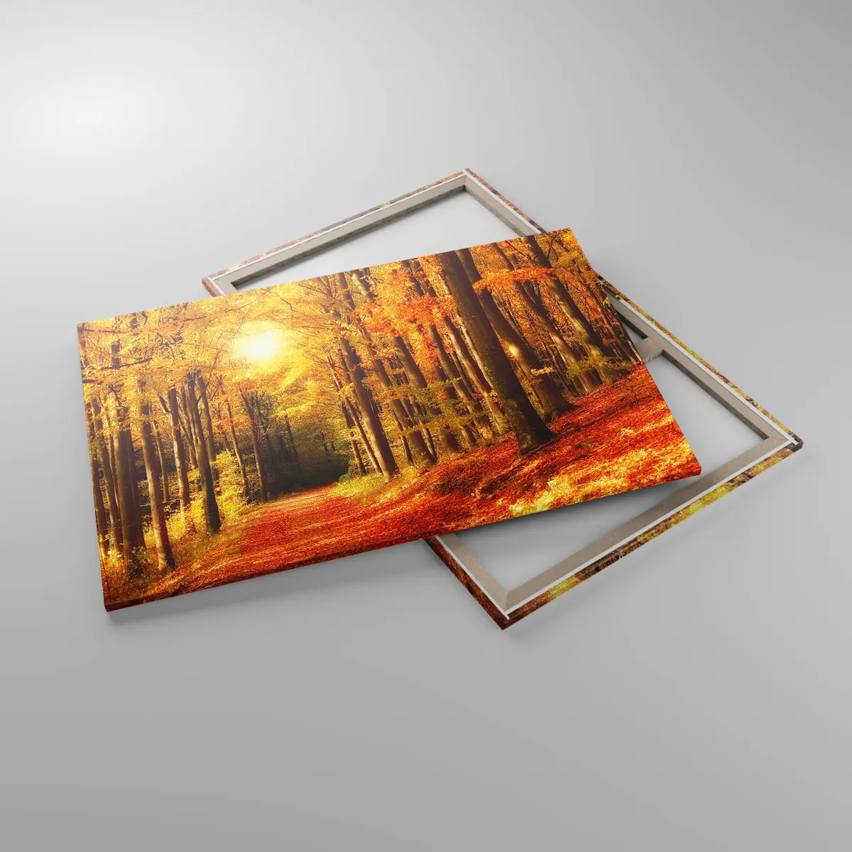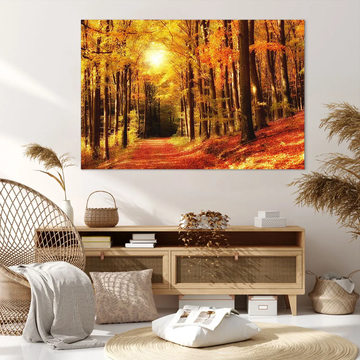 Vászonkép - Arany ősz az erdei úton - 120x80 cm