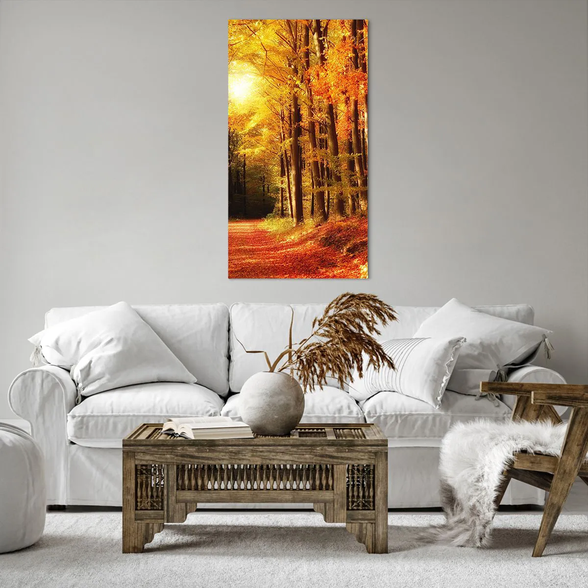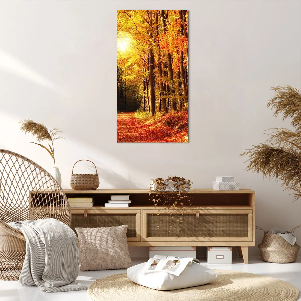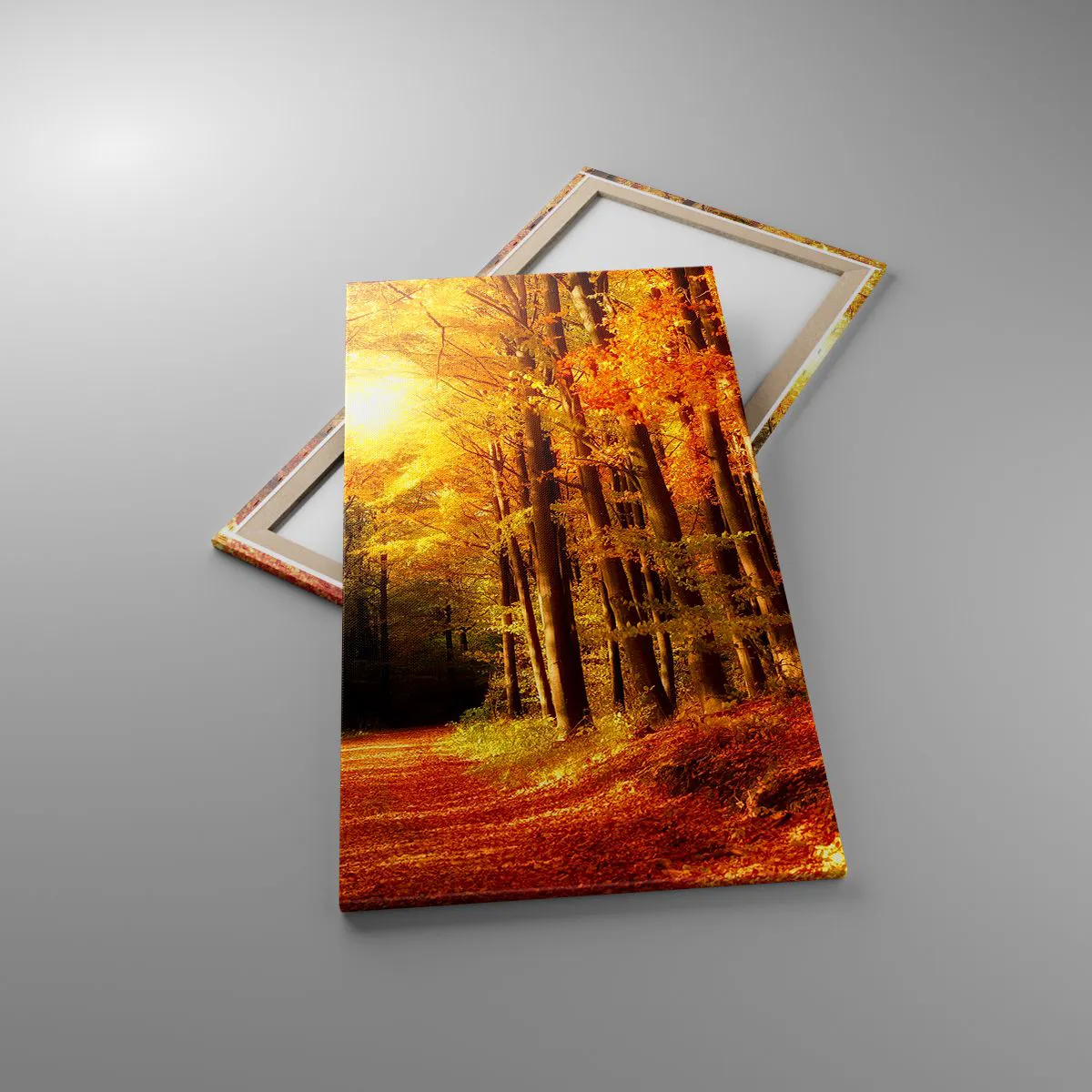 Vászonkép - Arany ősz az erdei úton - 65x120 cm