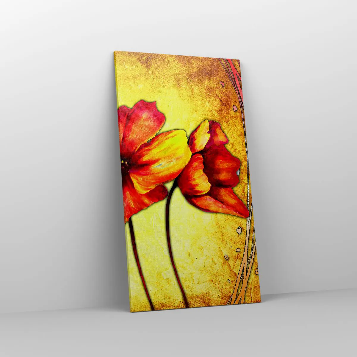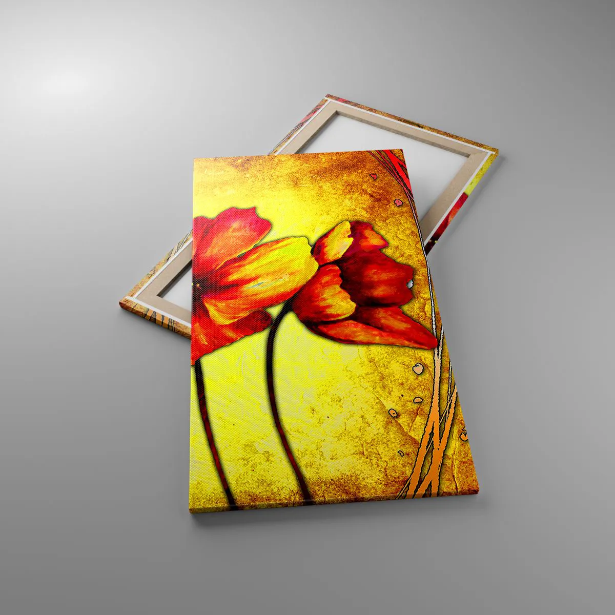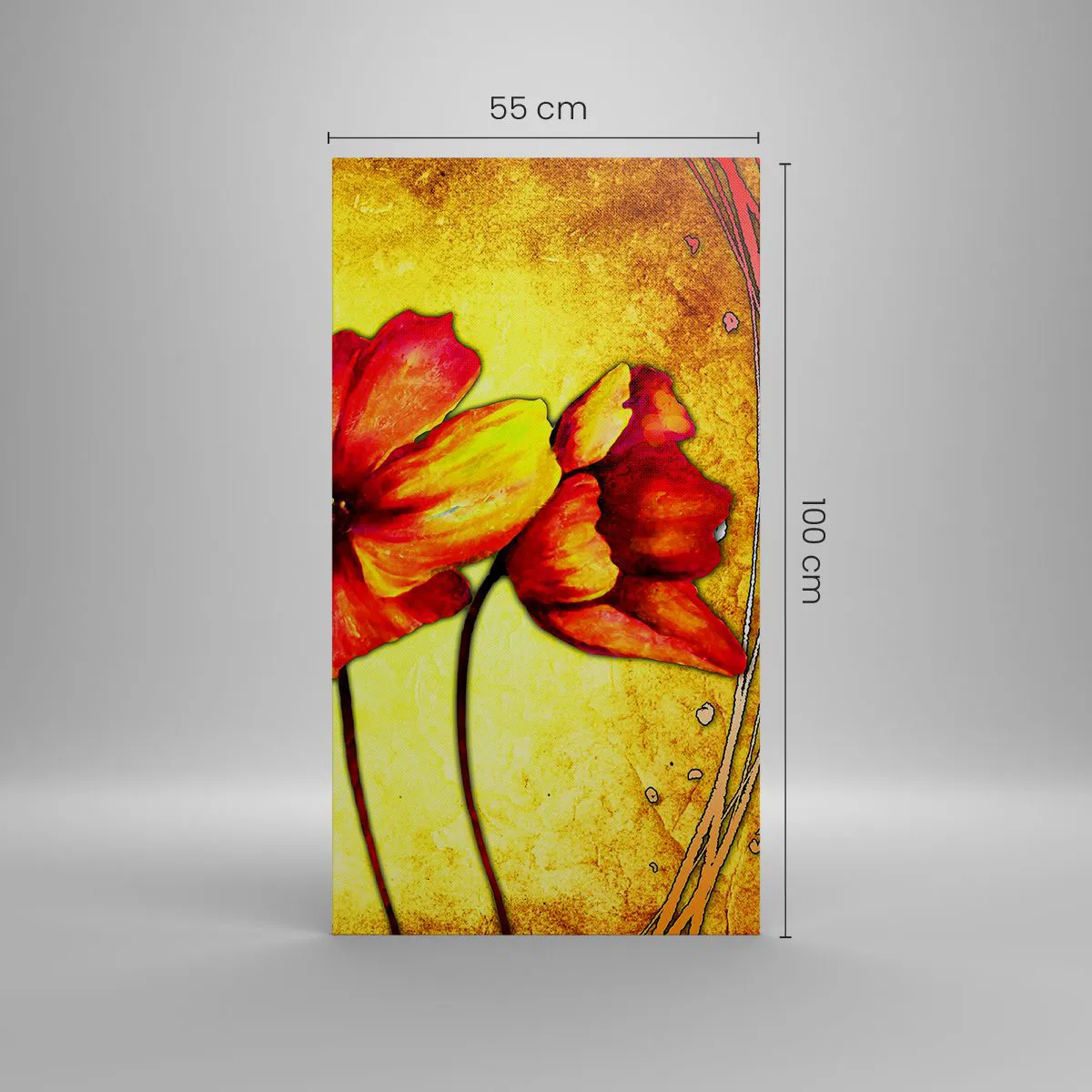 A vászon a keretre van feszítve. Az oldalak és a szélek nyomtatva vannak, a kép folytatását alkotva. A kép készen áll a falra akasztásra. Minden termékhez tartozik egy, a kerethez rögzített akasztó és egy rögzítőkészlet (csavar + dübel).