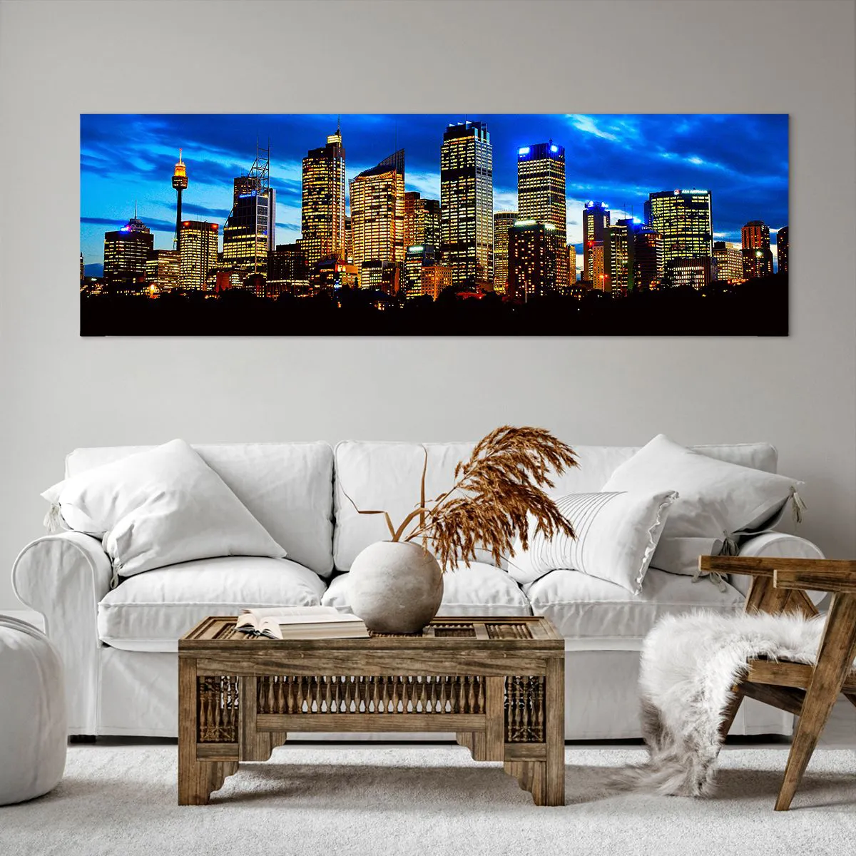 A vászon a keretre van feszítve. Az oldalak és a szélek nyomtatva vannak, a kép folytatását alkotva. A kép készen áll a falra akasztásra. Minden termékhez tartozik egy, a kerethez rögzített akasztó és egy rögzítőkészlet (csavar + dübel).
