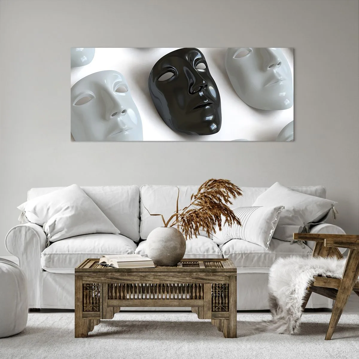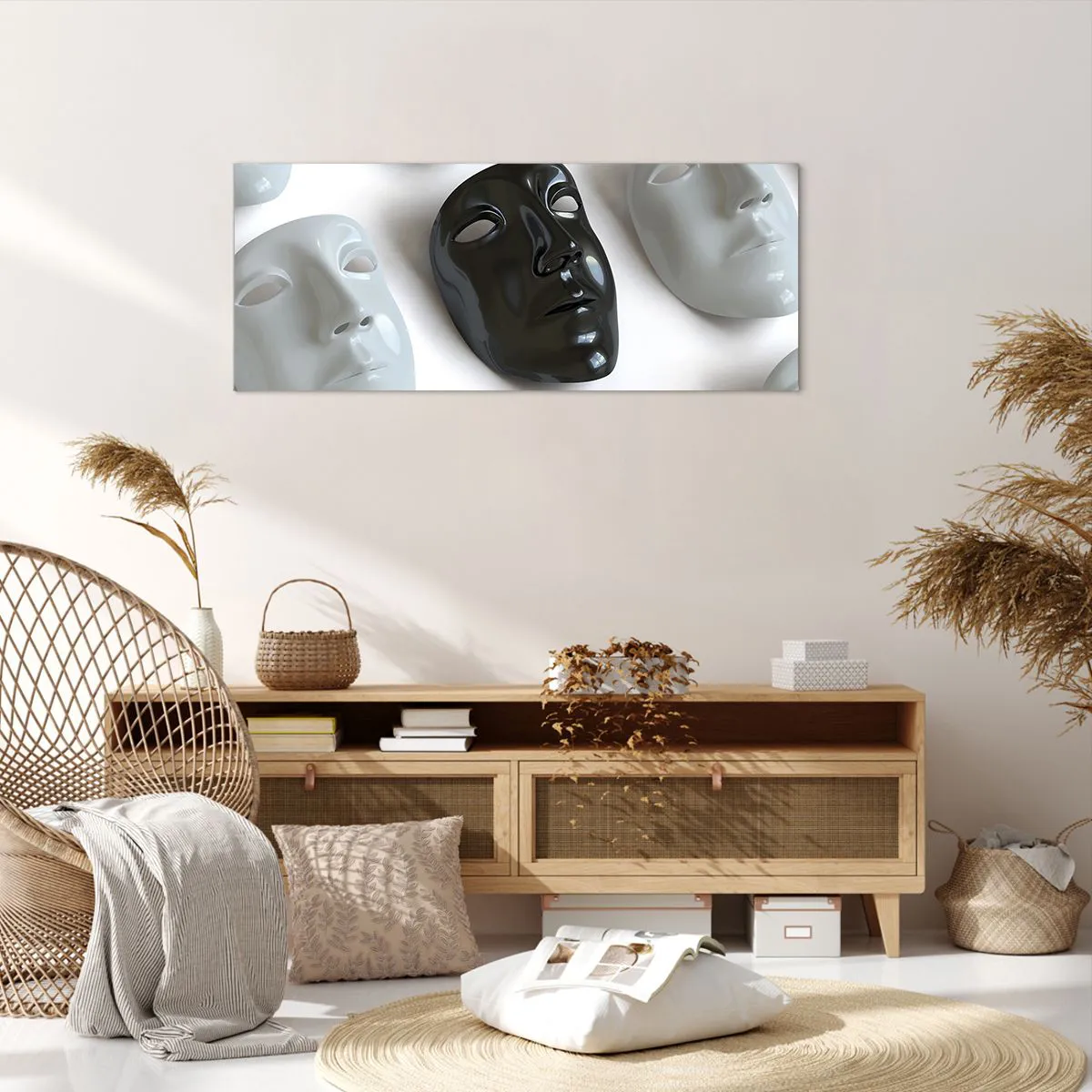 A vászon a keretre van feszítve. Az oldalak és a szélek nyomtatva vannak, a kép folytatását alkotva. A kép készen áll a falra akasztásra. Minden termékhez tartozik egy, a kerethez rögzített akasztó és egy rögzítőkészlet (csavar + dübel).