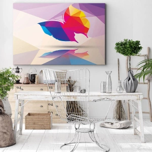 Vászonkép - Geometrikus pillangó sziluett élénk színekben - 70x50cm - Szivárvány pillangó - Modern fali dekoráció nappalihoz és hálószobához ARTTOR