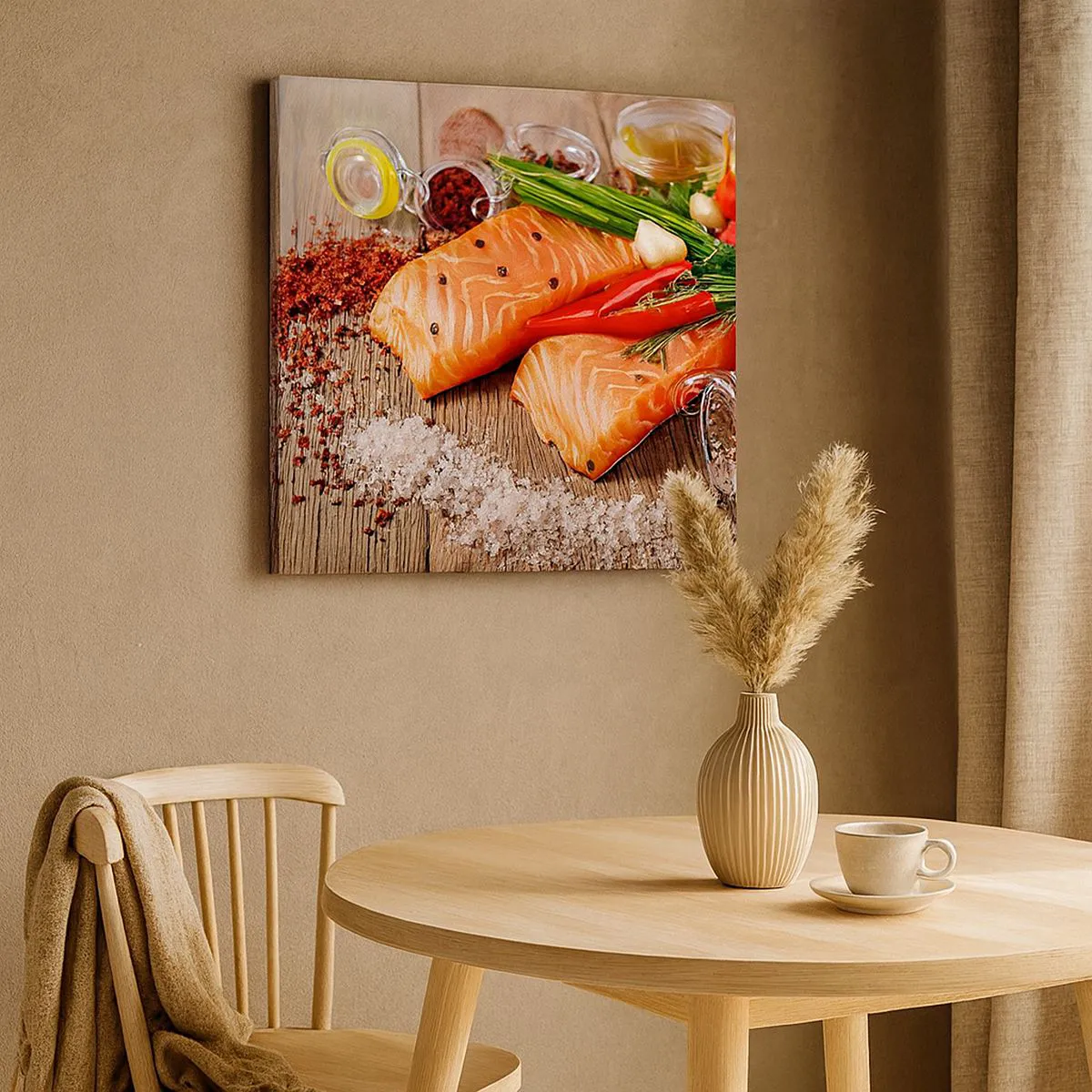 A vászon a keretre van feszítve. Az oldalak és a szélek nyomtatva vannak, a kép folytatását alkotva. A kép készen áll a falra akasztásra. Minden termékhez tartozik egy, a kerethez rögzített akasztó és egy rögzítőkészlet (csavar + dübel).