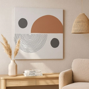 Vászonkép A "Geometrikus alakzatok barna és fekete árnyalatokban" egy modern faldekoráció, amely egyszerűségével és eleganciájával gyönyörködtet. A kompozíció fő elemei a geometriai alakzatok, például félkörök és körök, meleg barna és kontrasztos fekete árnyalatokban. Világos háttér előtt az egész rendkívül harmonikusnak és stílusosnak tűnik.