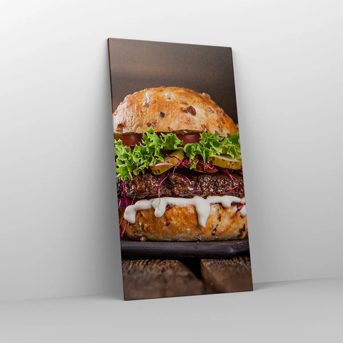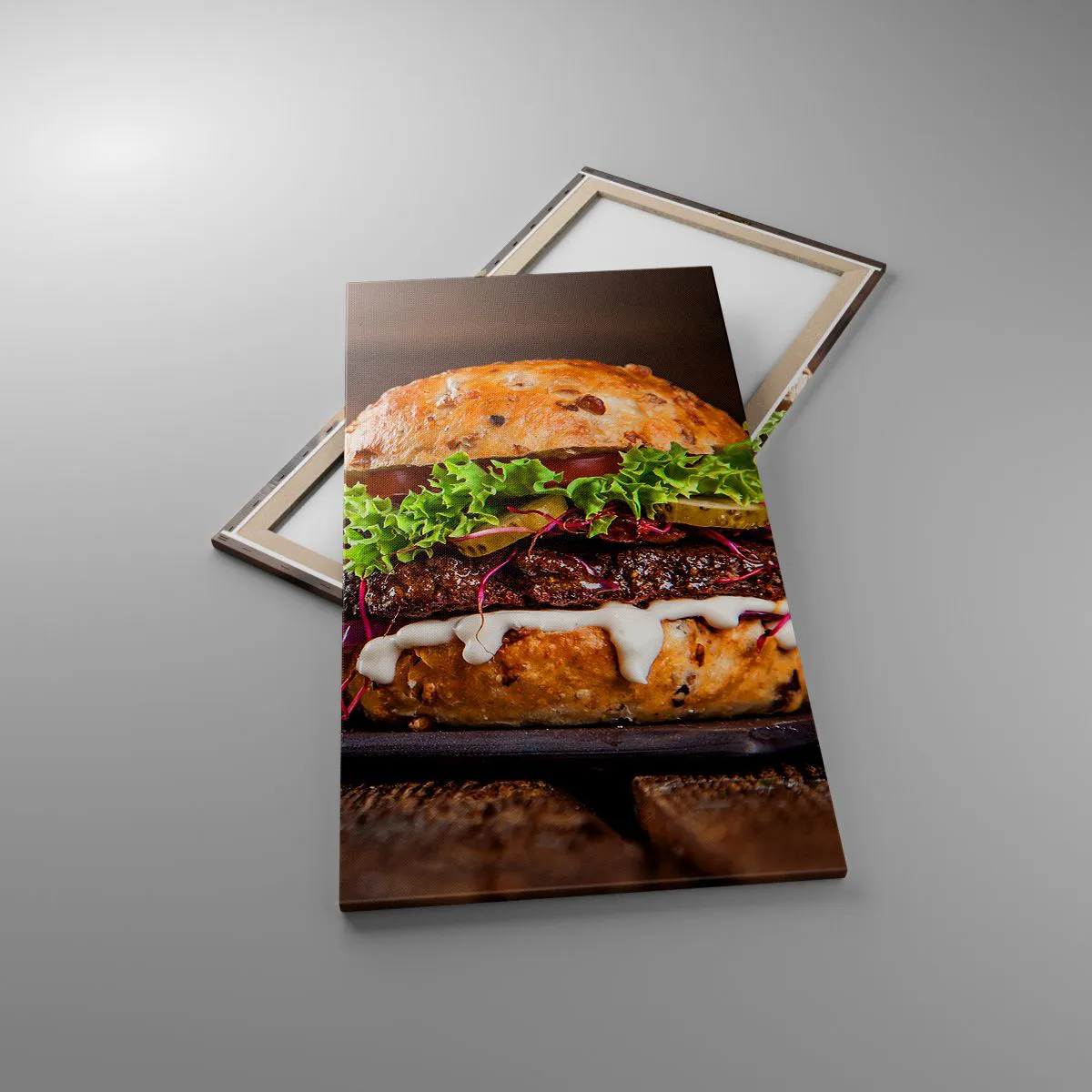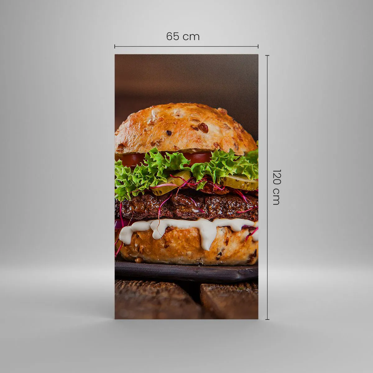 A vászon a keretre van feszítve. Az oldalak és a szélek nyomtatva vannak, a kép folytatását alkotva. A kép készen áll a falra akasztásra. Minden termékhez tartozik egy, a kerethez rögzített akasztó és egy rögzítőkészlet (csavar + dübel).
