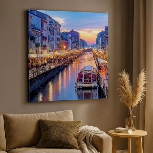 - Ez a vászonkép a csatorna esti látképét ábrázolja, színes épületek világításával. Tökéletes kiegészítője lehet bármilyen stílusos és elegáns enteriőrnek.