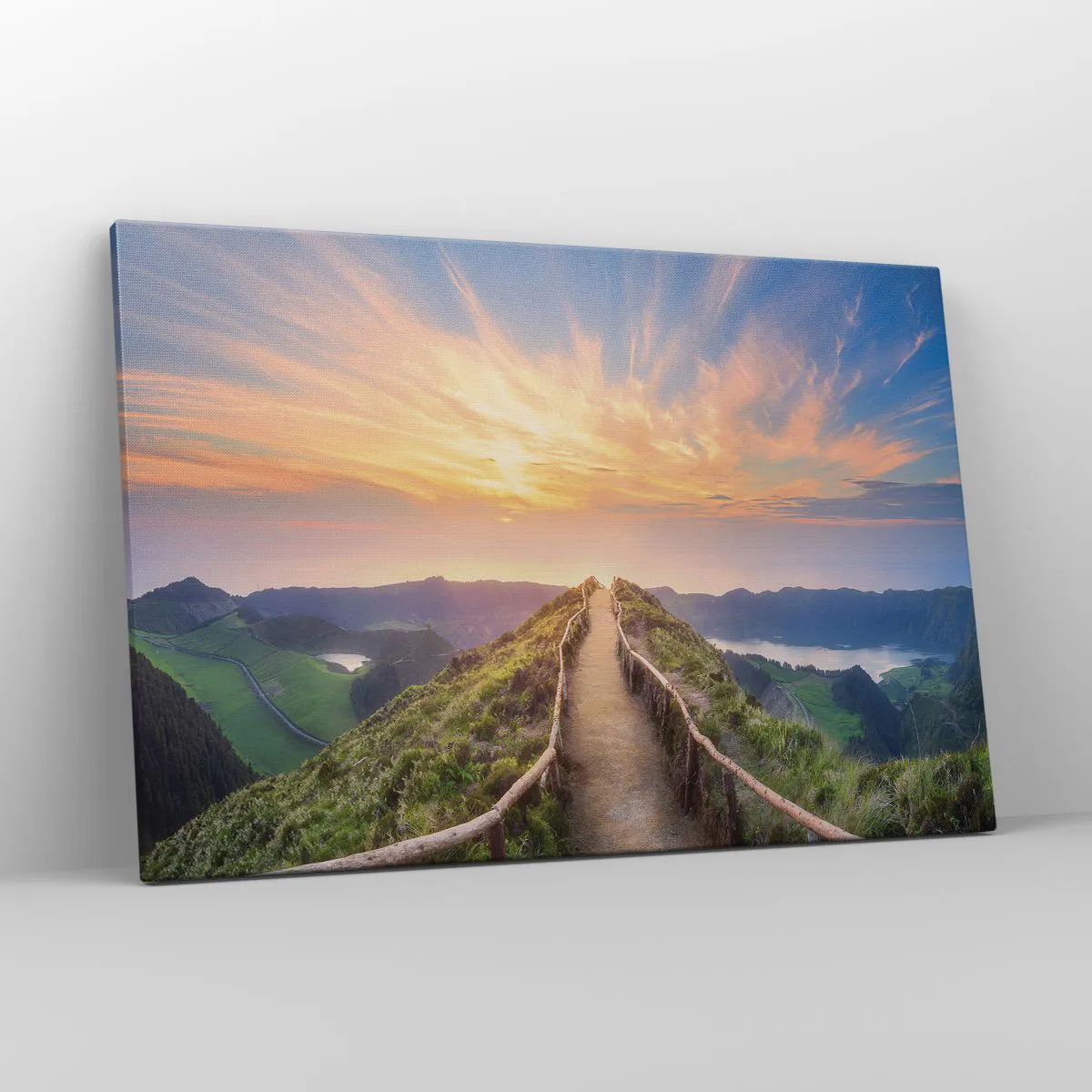 A vászon a keretre van feszítve. Az oldalak és a szélek nyomtatva vannak, a kép folytatását alkotva. A kép készen áll a falra akasztásra. Minden termékhez tartozik egy, a kerethez rögzített akasztó és egy rögzítőkészlet (csavar + dübel).