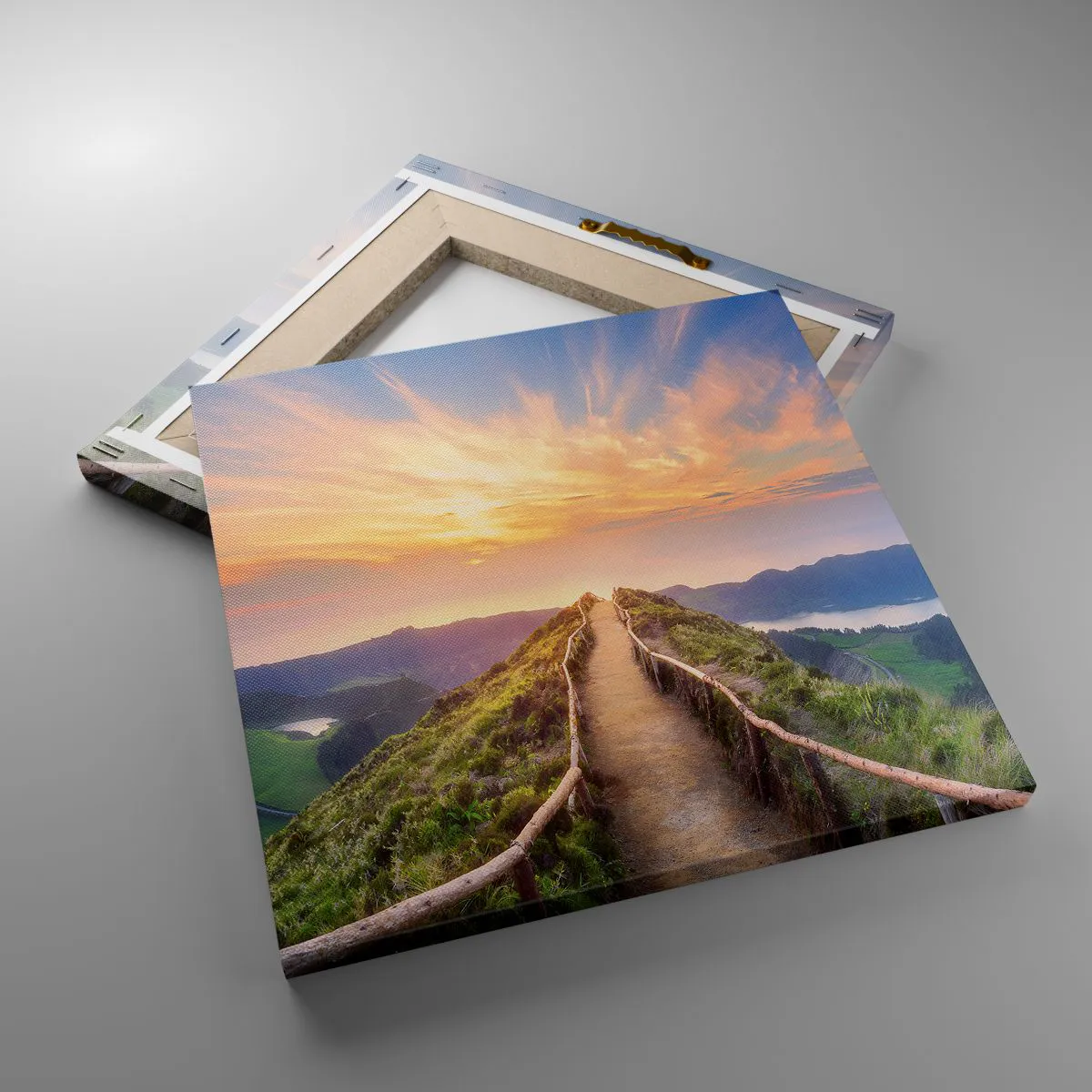 A vászon a keretre van feszítve. Az oldalak és a szélek nyomtatva vannak, a kép folytatását alkotva. A kép készen áll a falra akasztásra. Minden termékhez tartozik egy, a kerethez rögzített akasztó és egy rögzítőkészlet (csavar + dübel).