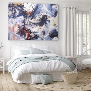 Az Absztrakció őrült tánca egy kifejező alkotás, amely dinamikus ecsetvonásokat ábrázol kék, piros és fehér árnyalatokban. Ez az absztrakt motívum energiájával és tisztaságával gyönyörködtet, tökéletesen illik a kortárs enteriőrökhöz.