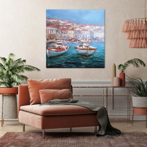 - Az „Olasz öböl” vászonkép egy hajó elbűvölő látványát ábrázolja festői olasz építészet és azúrkék tenger hátterében. Tökéletes kiegészítője a harmóniát és a nyaralás hangulatát idéző enteriőröknek.