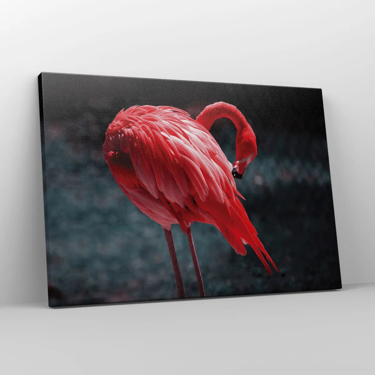 A "Rózsaszín flamingó" vászonkép egzotikus bájjal és eleganciával kápráztat el. Egy rózsaszín flamingót ábrázol természetes pózban, sötétzöld háttér előtt, ami egyedi kontrasztot teremt és kiemeli szépségét. Ez a finom kompozíció tökéletes választás a természet és a trópusi éghajlat szerelmeseinek.