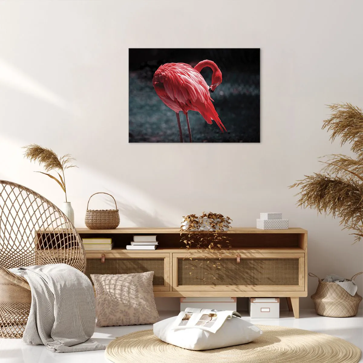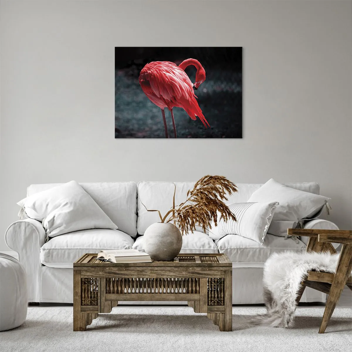 A finomságot és kecsességet szimbolizáló **flamingó** motívum kiváló választás azok számára, akik egyedi jelleget szeretnének adni otthonuknak. Nagyszerű ajándékötlet az állatok és az egzotikus tájak szerelmeseinek is. A "Rózsaszín flamingó" festmény magára vonzza a tekintetet és egyedi hangulatot teremt.