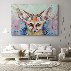 - Ez a festmény egy sivatagi róka színes portréját ábrázolja expresszív festészet stílusában. Ez a kifejező kompozíció tökéletes dekoráció lehet nappaliba, hálószobába vagy irodába.