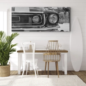 Vászonkép - Fekete-fehér klasszikus autó motorháztető - 70x50cm - Vad utazás - Modern fali dekoráció nappalihoz és hálószobához ARTTOR