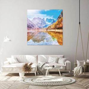 Az „Ősz van a hegyekben” című vászonkép egy egyedülálló természeti jelenet, amelyet az év legszebb időszakában örökített meg. Festői hegyi tájat ábrázol egy tóval, amely tükrözi a környező fákat és fenséges csúcsokat. Az őszi levelek vörös, narancssárga és arany árnyalatai egyedi melegséget és bájt kölcsönöznek a műnek.