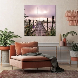 A "Ázsia békéje és nyugalma" című vászonkép egyedi megközelítése egy egzotikus tájnak, amely harmóniát és nyugalmat visz az enteriőrbe. Egy bambuszhidat ábrázol, amely hajnalban nyúlik át a nyugodt víz felett. A lágy reggeli fény körülveszi a tájat, finom bájt és pihentető légkört kölcsönözve neki.