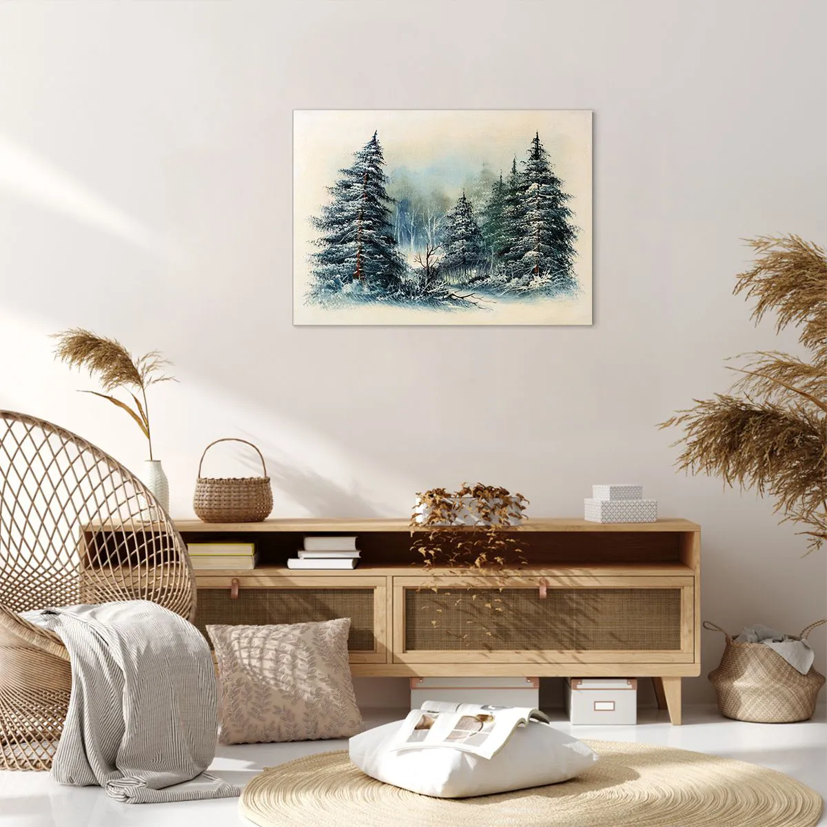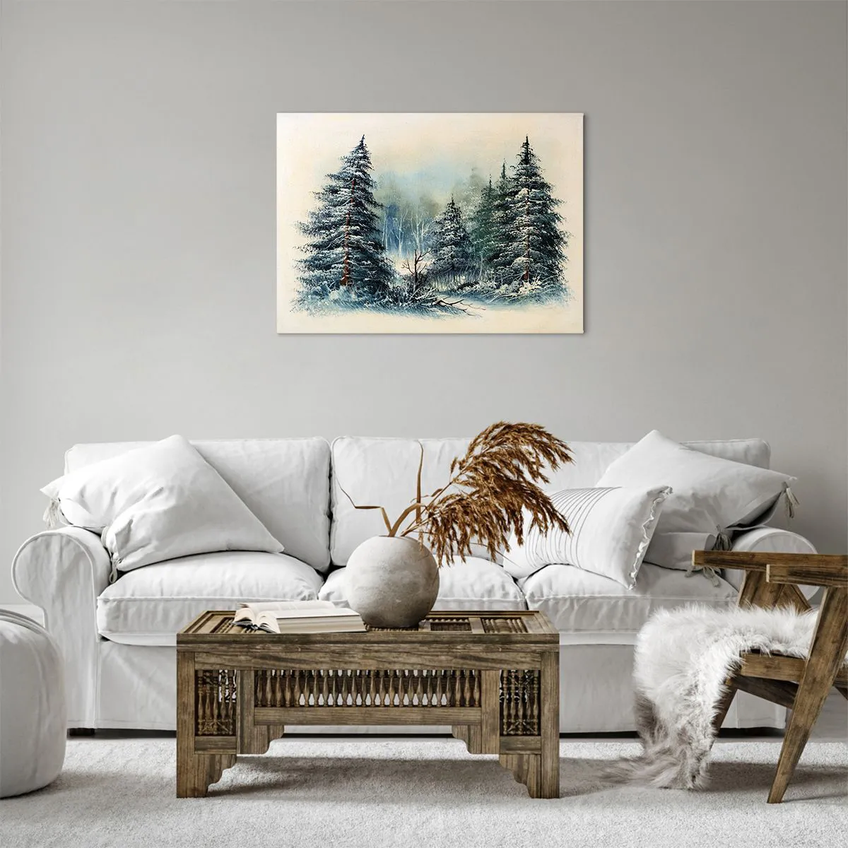 Vászonkép - Téli táj hófödte fákkal - 70x50cm - Karácsonyra készen - Modern fali dekoráció nappalihoz és hálószobához ARTTOR