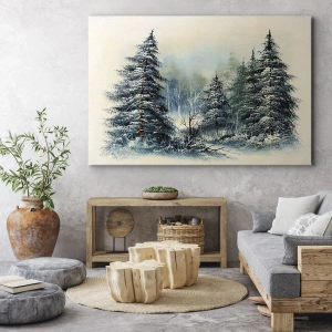 - Ez a festmény egy téli tájat ábrázol hófödte fákkal, békét és harmóniát árasztva. Tökéletes kiegészítője lehet bármilyen enteriőrnek az ünnepi időszakban és télen.