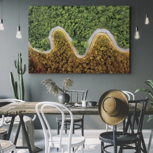 - Ez a 70x50 cm-es vászonkép egy sűrű erdőn átvezető kanyargós utat ábrázol madártávlatból. Tökéletes dekoráció természetkedvelőknek és modern enteriőrökbe.