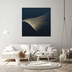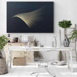 Vászonkép - Egy finom, tollszerű vonal sötétkék alapon - 70x50cm - Mint egy angyal haja - Modern fali dekoráció nappalihoz és hálószobához ARTTOR