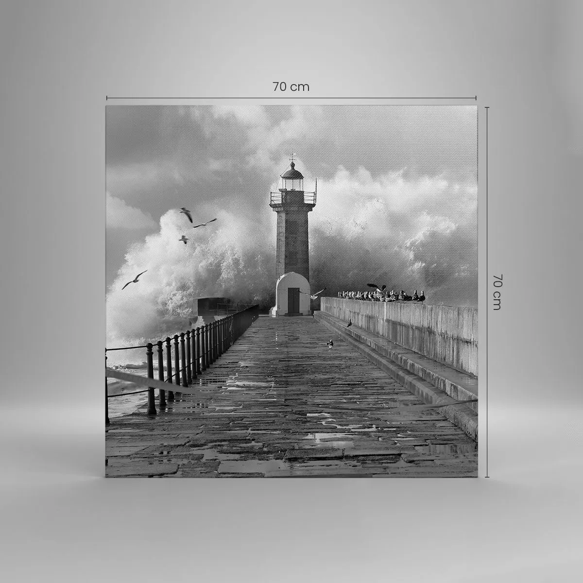 A vászon a keretre van feszítve. Az oldalak és a szélek nyomtatva vannak, a kép folytatását alkotva. A kép készen áll a falra akasztásra. Minden termékhez tartozik egy, a kerethez rögzített akasztó és egy rögzítőkészlet (csavar + dübel).