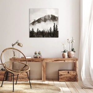 A ködbe burkolózó hegycsúcs a tartósságot, az erőt és a misztikumot szimbolizálja. A festmény a kidolgozás precizitásával vonzza a figyelmet, egyidejűleg térbeli és csendbeli hangulatot teremtve. Ez a műalkotás ideális választás azok számára, akik a természet szépsége és a tájak harmóniája által ihletett dekorációkkal szeretnék körülvenni magukat.