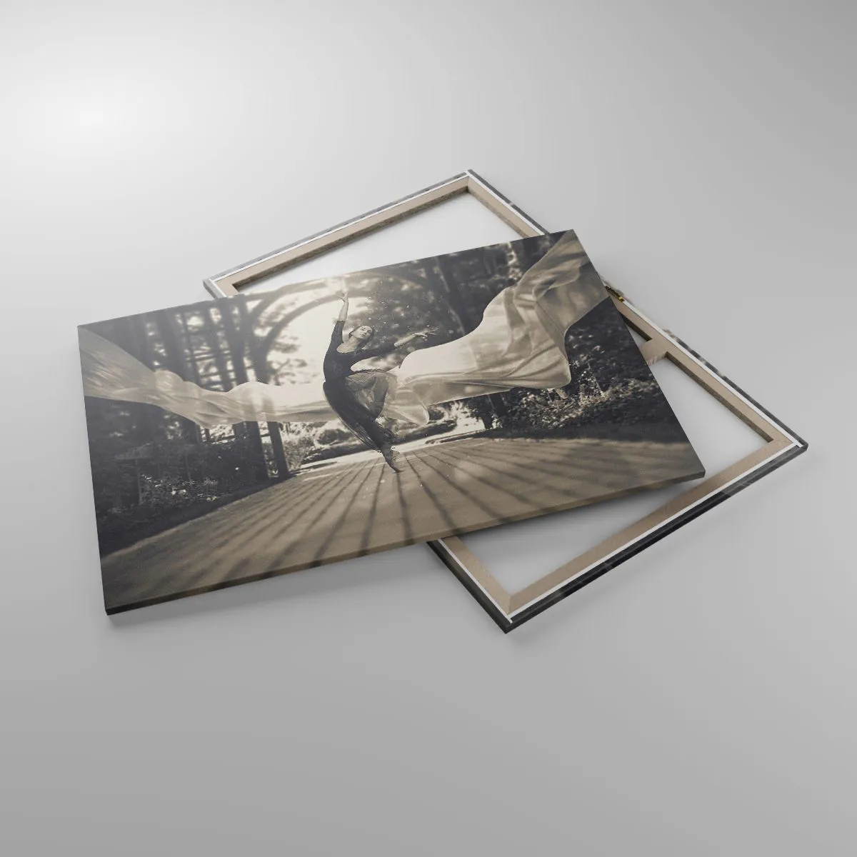 A vászon a keretre van feszítve. Az oldalak és a szélek nyomtatva vannak, a kép folytatását alkotva. A kép készen áll a falra akasztásra. Minden termékhez tartozik egy, a kerethez rögzített akasztó és egy rögzítőkészlet (csavar + dübel).