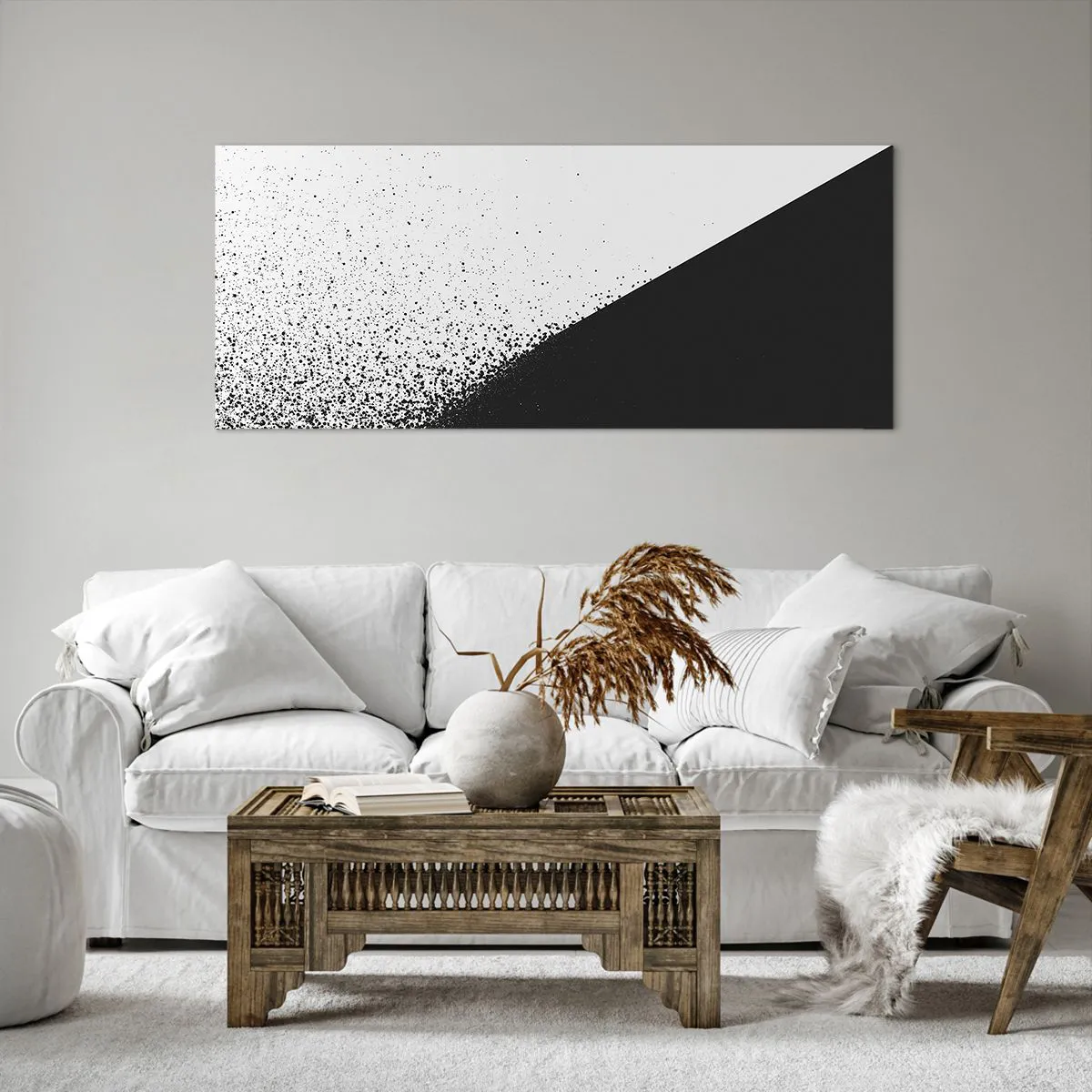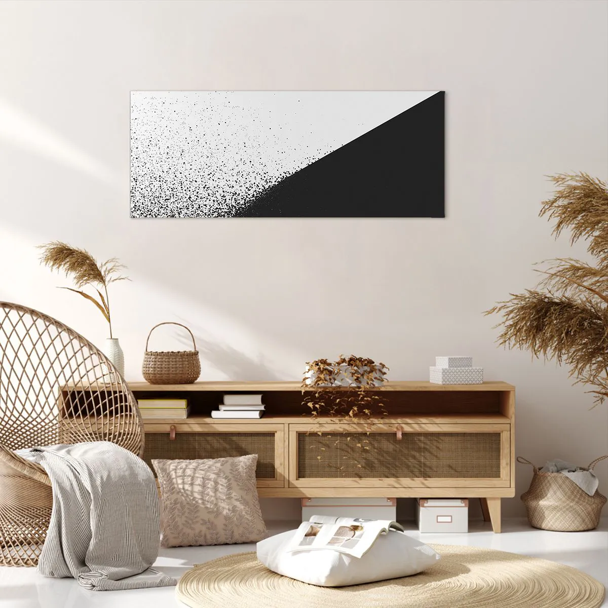 A vászon a keretre van feszítve. Az oldalak és a szélek nyomtatva vannak, a kép folytatását alkotva. A kép készen áll a falra akasztásra. Minden termékhez tartozik egy, a kerethez rögzített akasztó és egy rögzítőkészlet (csavar + dübel).