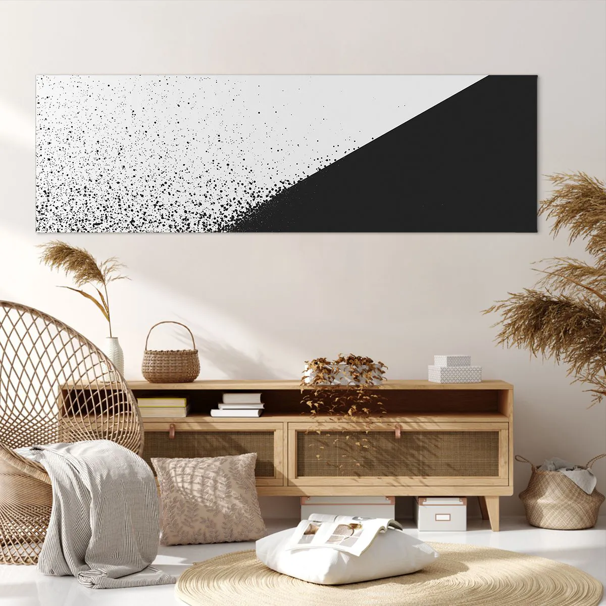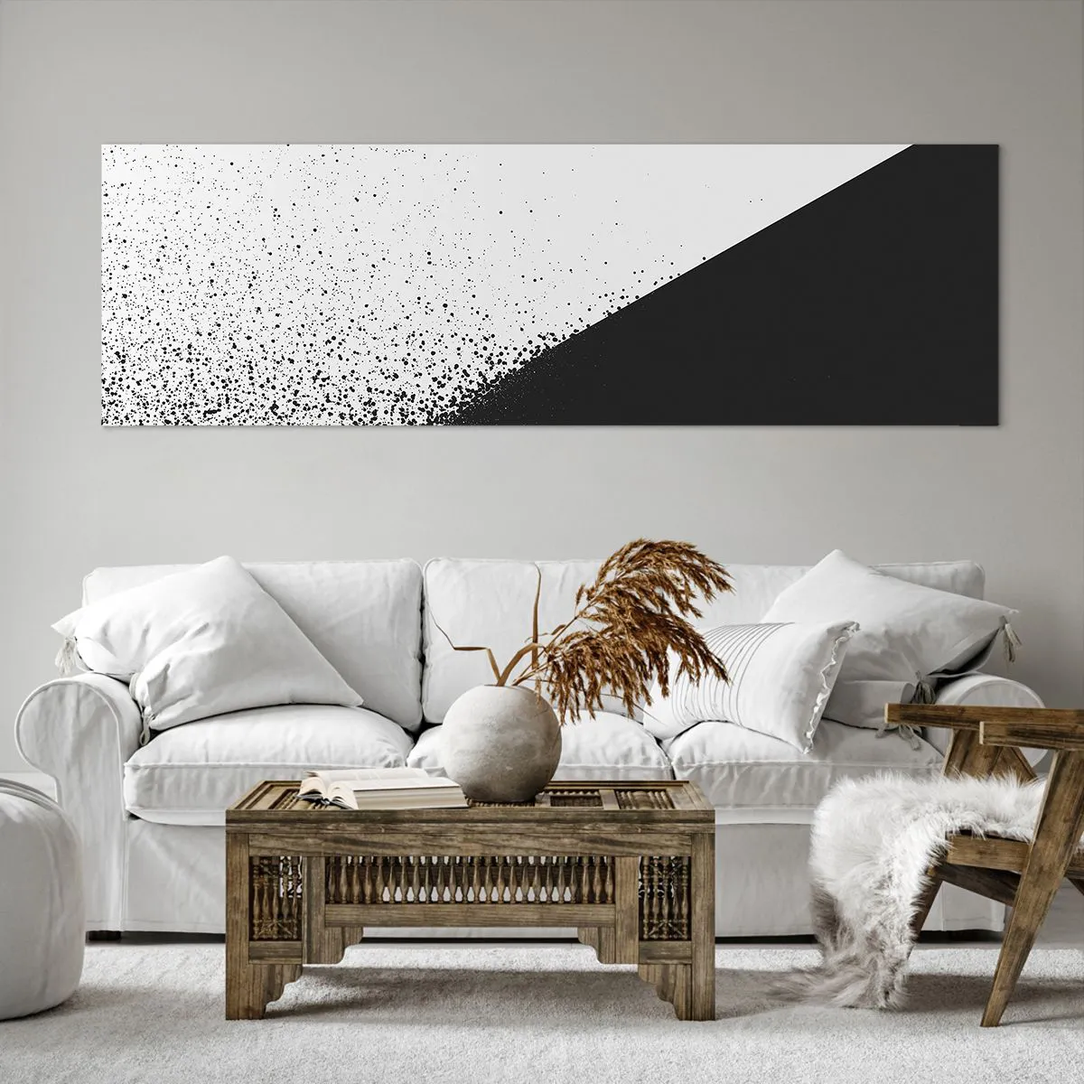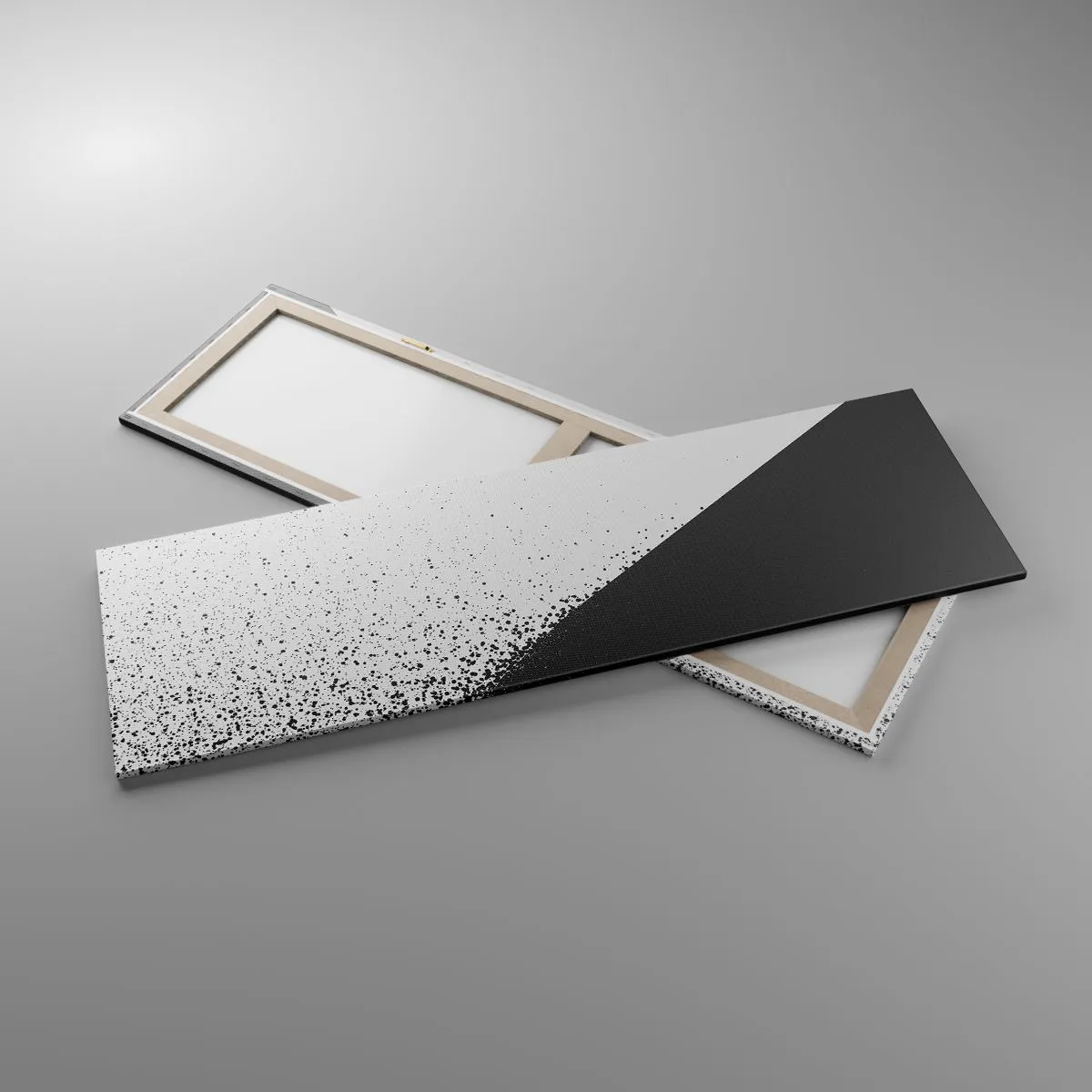 A vászon a keretre van feszítve. Az oldalak és a szélek nyomtatva vannak, a kép folytatását alkotva. A kép készen áll a falra akasztásra. Minden termékhez tartozik egy, a kerethez rögzített akasztó és egy rögzítőkészlet (csavar + dübel).