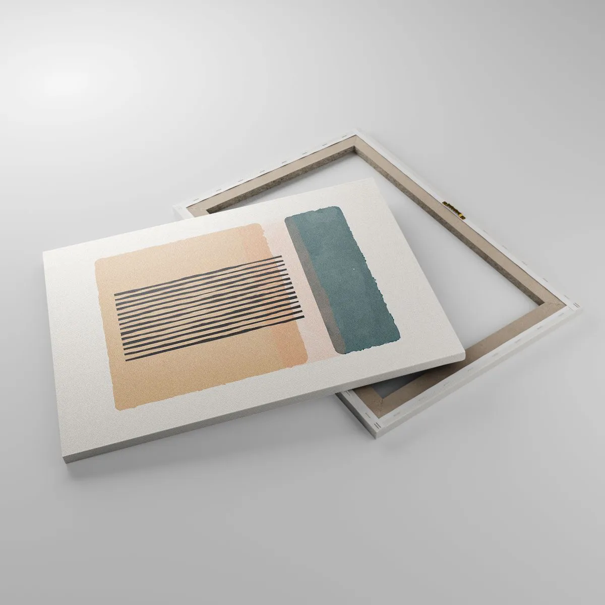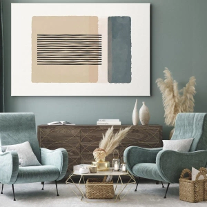 A "Minden rendben" című festmény egy modern absztrakt alkotás, amely minimalista geometriai formákat ötvöz finom bézs és zöld árnyalatokban. A fekete vonalak kontrasztot és mélységet adnak a kompozíciónak, elegáns szín- és formaharmóniát teremtve. A festmény egyszerűségével gyönyörködtet, miközben kifinomultságot és stílust visz az enteriőrbe.