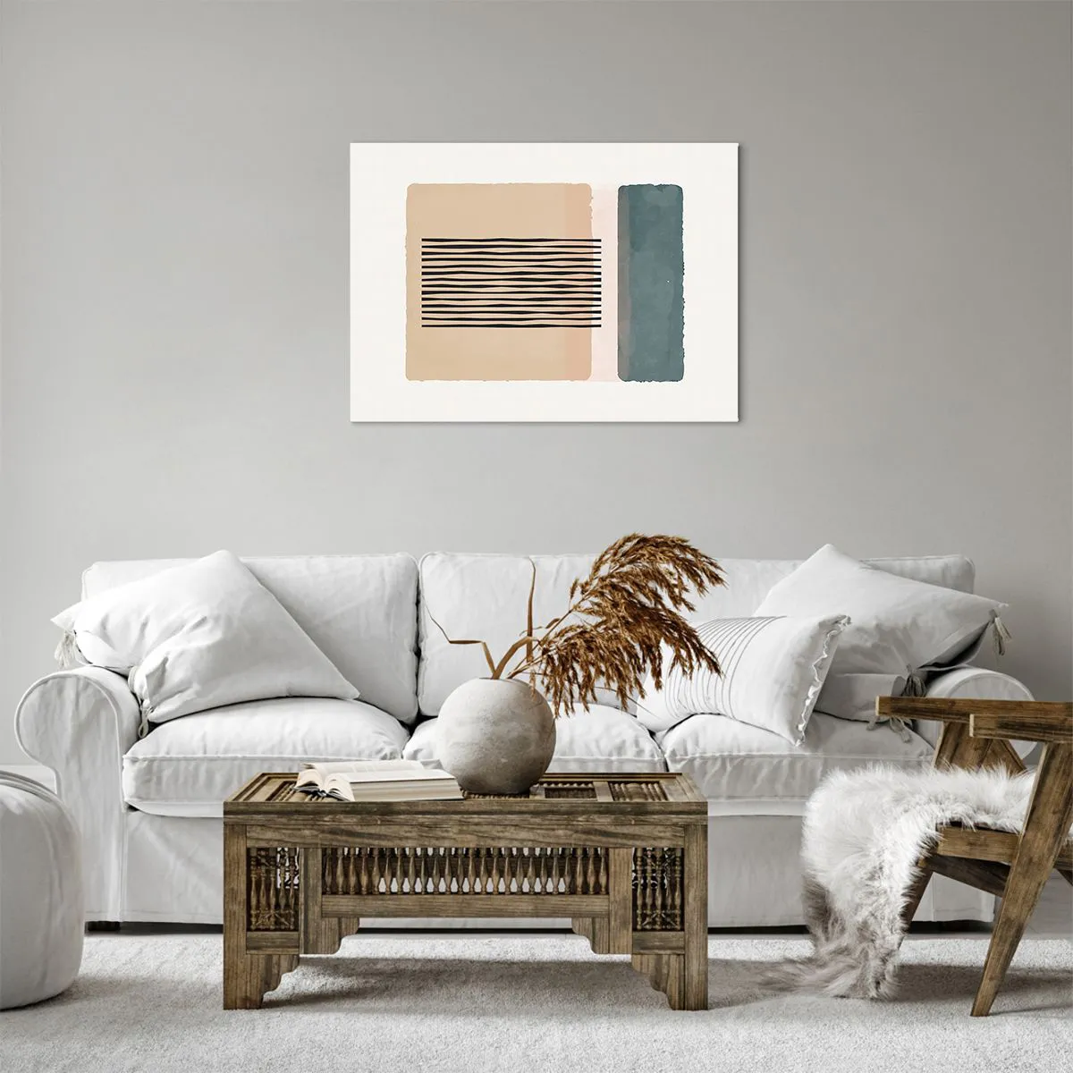 Vászonkép - Minimalista geometrikus formák bézs és zöld árnyalatokban - 70x50cm - Minden rendben - Modern fali dekoráció nappalihoz és hálószobához ARTTOR