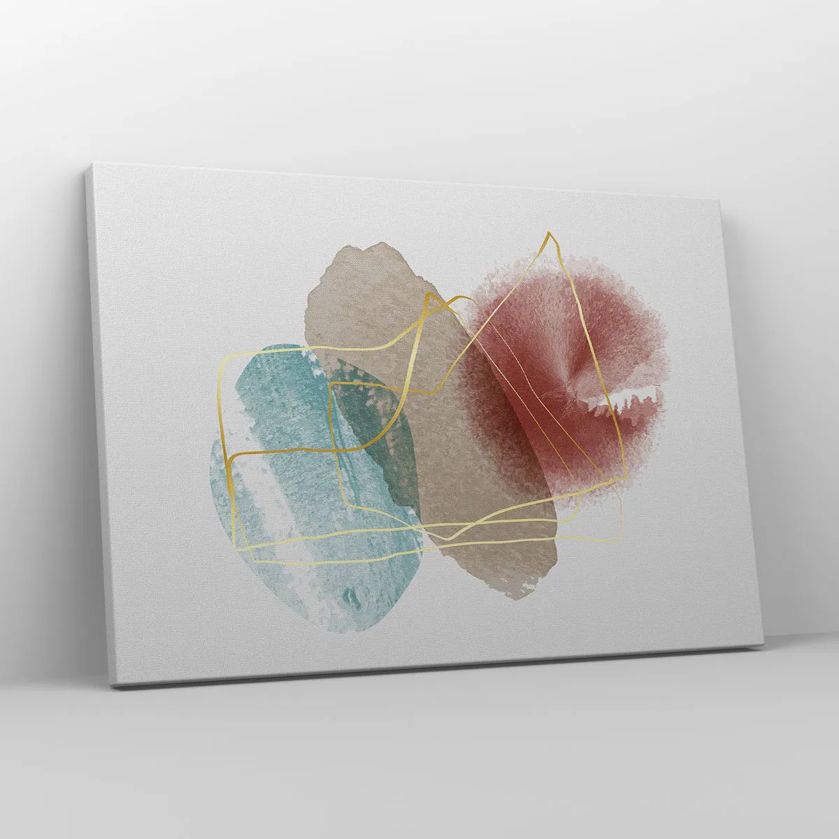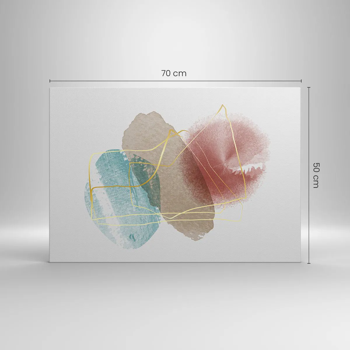 Vászonkép - Absztrakt formák finom színekkel és arany vonalakkal - 70x50cm - Az űr koralljai - Modern fali dekoráció nappalihoz és hálószobához ARTTOR