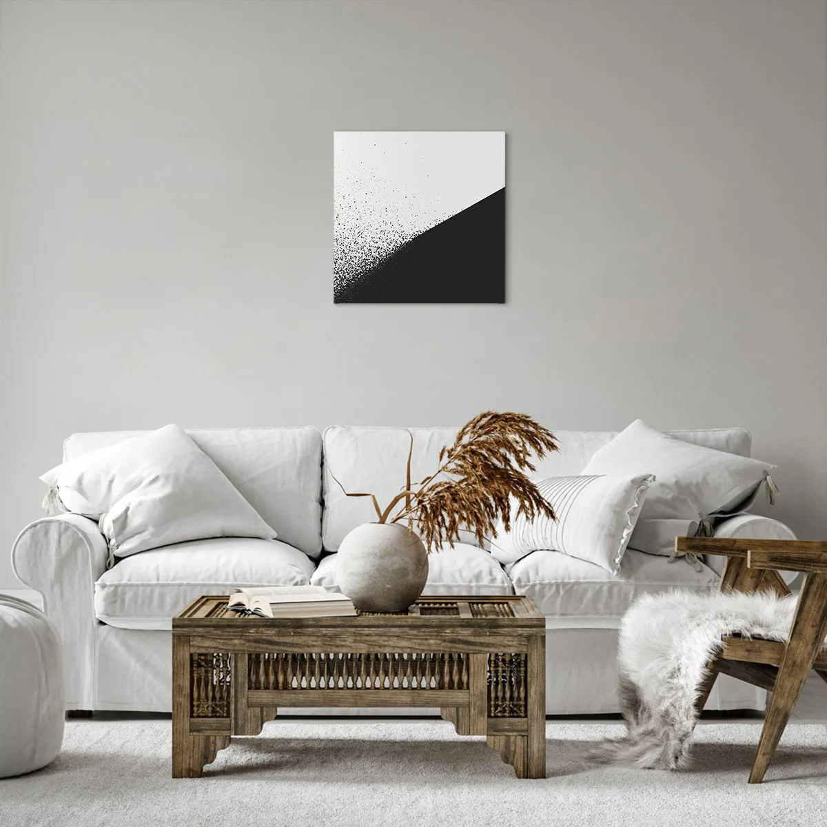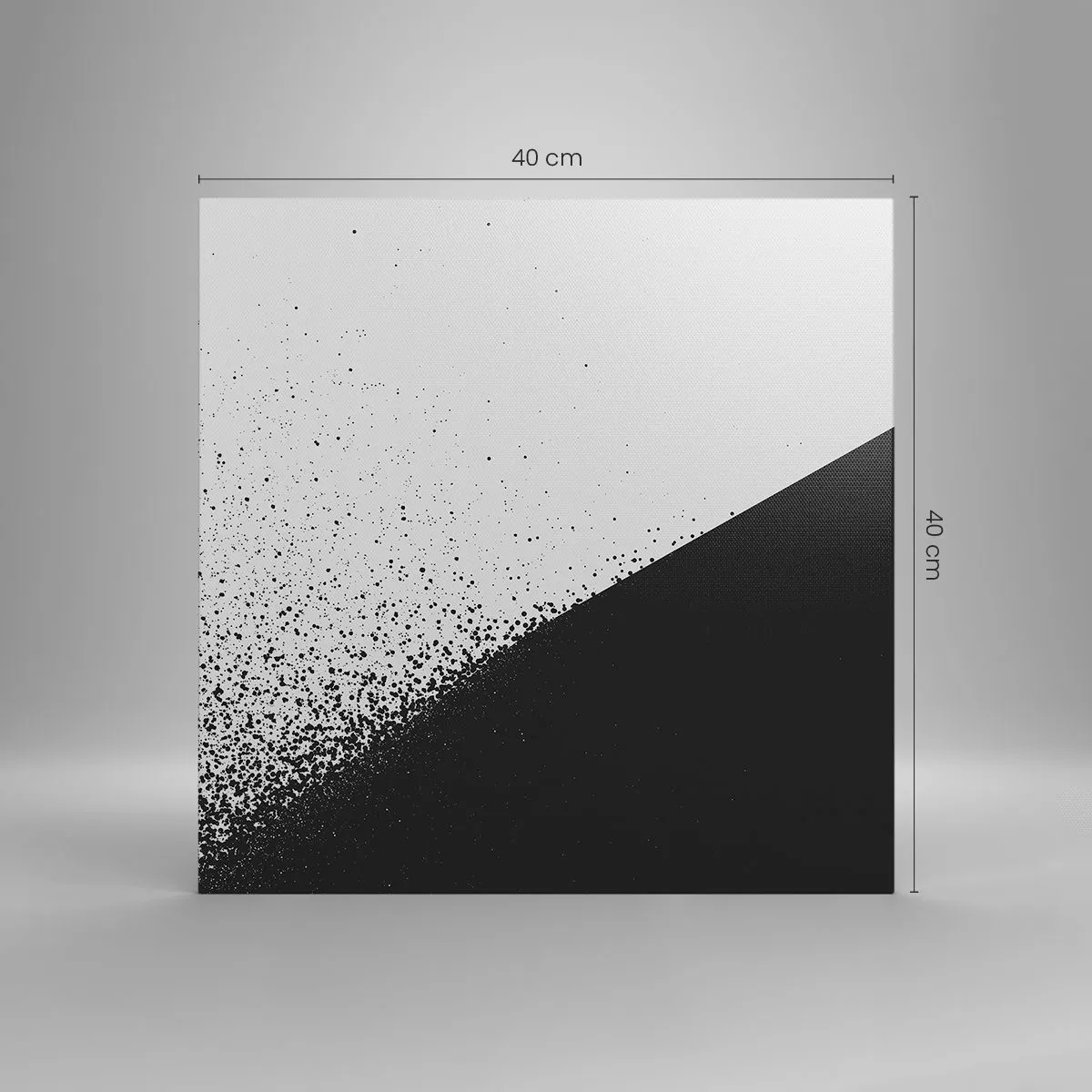 A vászon a keretre van feszítve. Az oldalak és a szélek nyomtatva vannak, a kép folytatását alkotva. A kép készen áll a falra akasztásra. Minden termékhez tartozik egy, a kerethez rögzített akasztó és egy rögzítőkészlet (csavar + dübel).