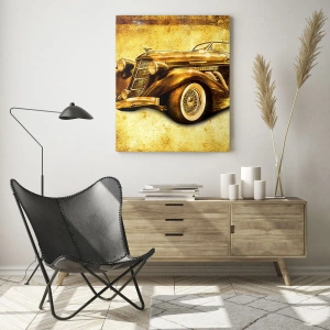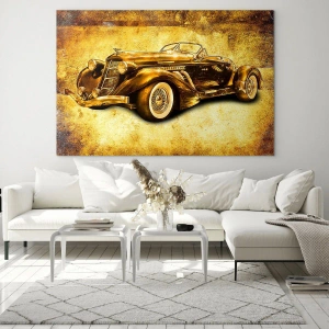 Üveg kép - Veterán kabrió autó egy vintage háttérrel - 70x50cm - Az elit elitje - Modern fali dekoráció nappalihoz és hálószobához ARTTOR