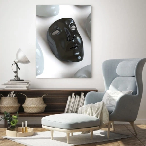 A festmény fókuszpontját képező fekete-fehér maszk kifejezőerejével tűnik ki az egyszerű fehér maszkok hátteréből. Ez a finom, mégis erős kontraszt vonzza a tekintetet, eredetiséget és inspirációt visz a belső térbe. Ugyanakkor a kompozíció egyszerűsége és minimalizmusa eleganciát és modern jelleget kölcsönöz neki.