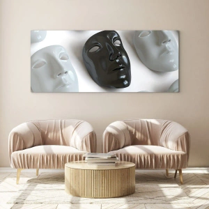Üveg kép - Fekete-fehér maszk fehér maszkok hátterében, világos háttér előtt - 70x50cm - Hogyan lehet kitűnni? - Modern fali dekoráció nappalihoz és hálószobához ARTTOR