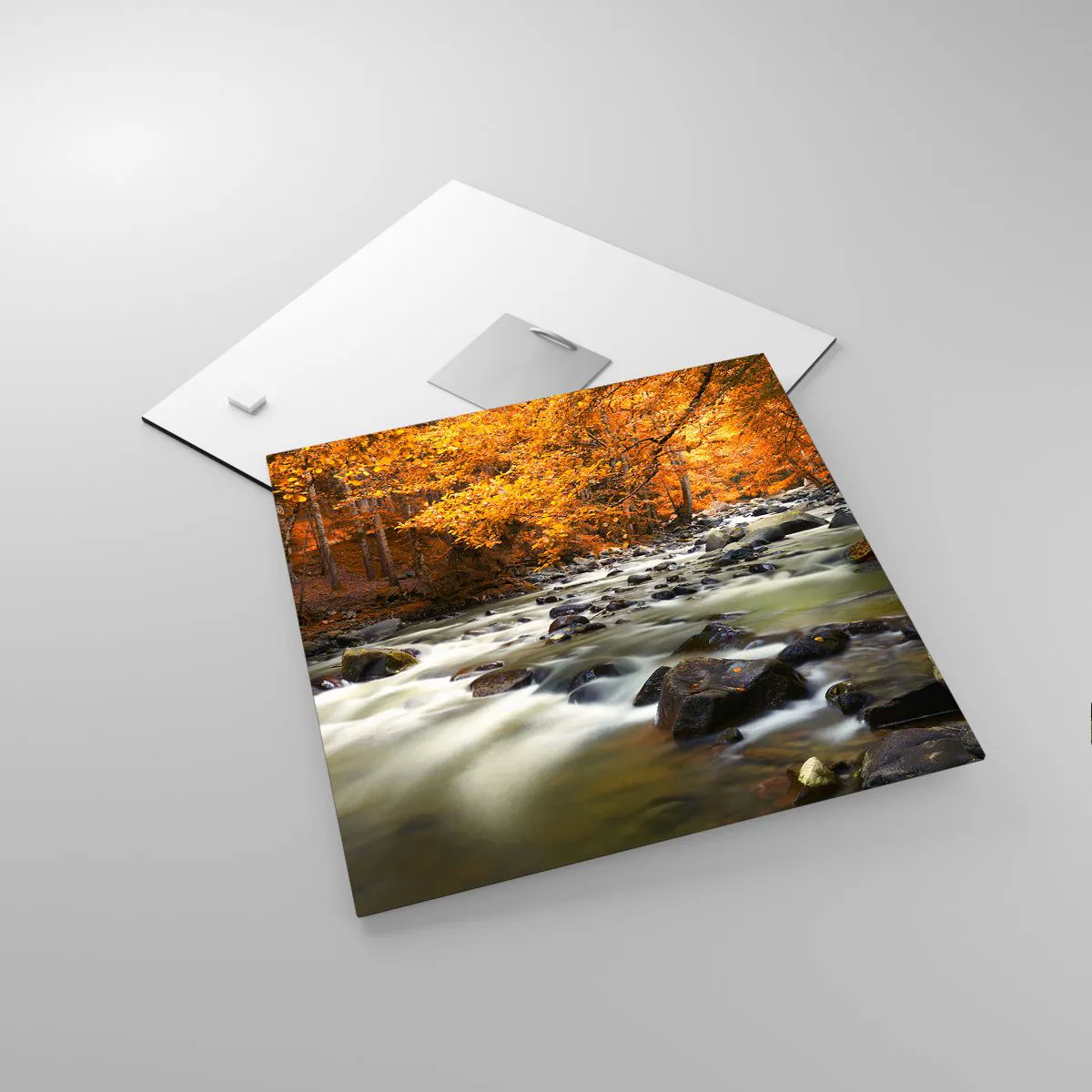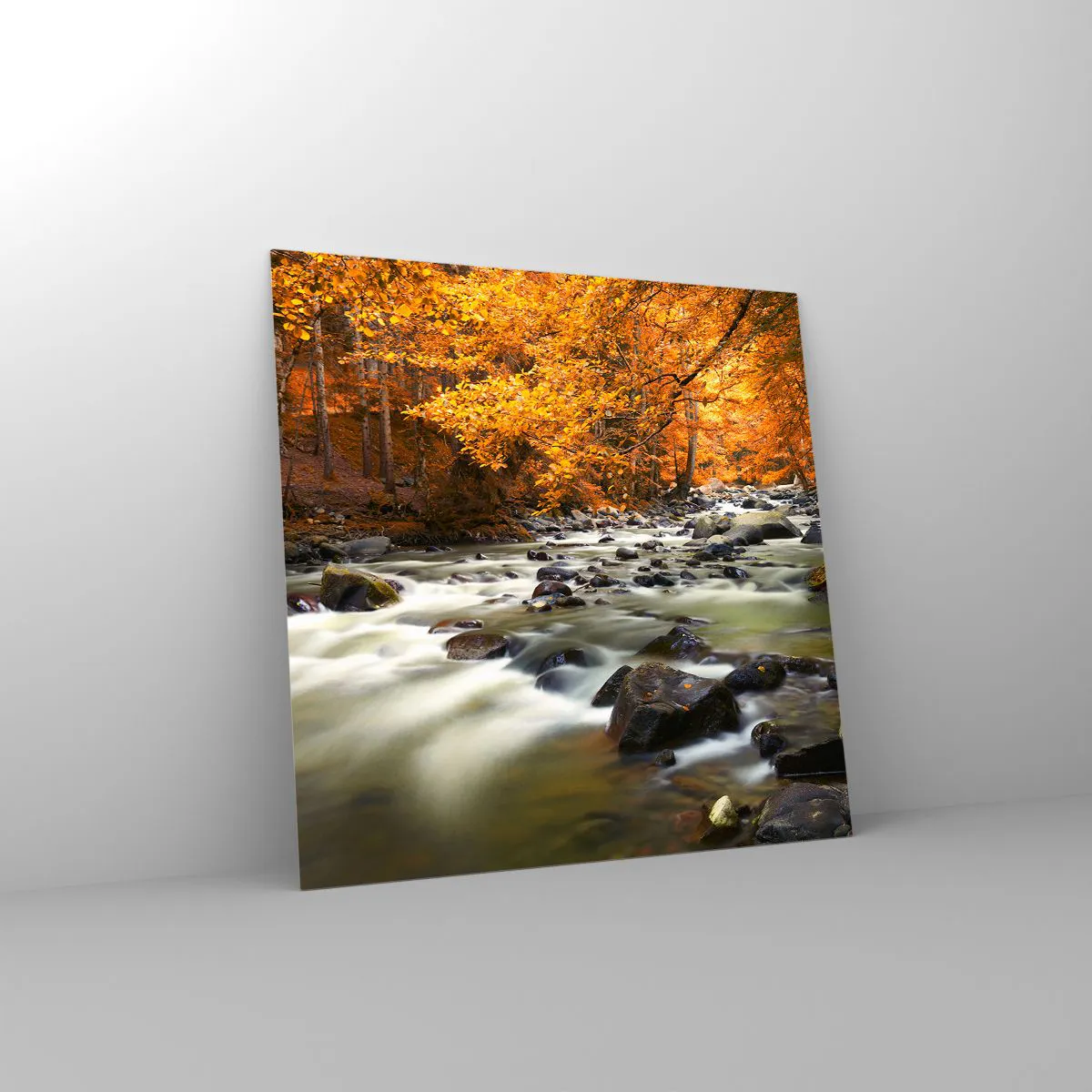 Üveg kép - Egy patak az aranyerdőben - 30x30 cm