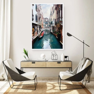 Poszter - Velencei táj gondolával és híddal - 40x40 cm