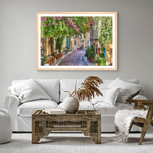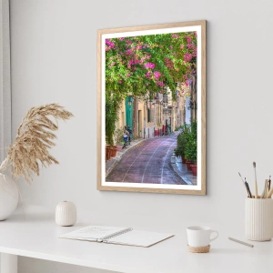 Poszter világos tölgy keretben - Virágzó sikátor - 30x30 cm