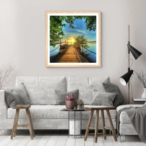 Poszter világos tölgy keretben - Naplemente a víz felett - 40x30 cm