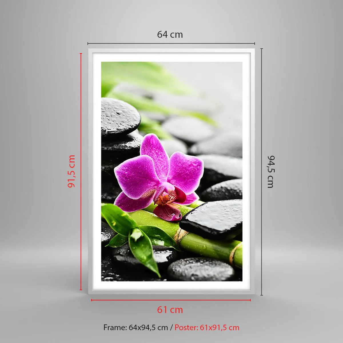 A bekeretezett poszter azonnal falra rögzíthető. A nyomat kiváló minőségű, 200 g/m2 tömegű prémium papírra készül. A modern és stílusos keret 2 cm széles MDF-ből készült. A kép hátoldalát 2 mm vastag HDF lap biztosítja. A bekeretezett poszter könnyű, és a kényelmes rögzítés érdekében akasztóval rendelkezik. Minden keret könnyű és törhetetlen átlátszó akril plexi borítással van ellátva.