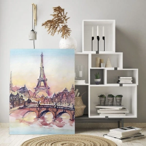 - Ez a festmény, amely Párizs romantikus panorámáját ábrázolja az Eiffel-toronnyal a háttérben, finom akvarell stílusban készült. Tökéletes dekoráció a művészet és a francia elegancia szerelmeseinek.