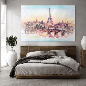 Falfestmény - Párizs panorámája az Eiffel-toronnyal finom akvarell stílusban - Párizs panorámája az Eiffel-toronnyal finom akvarell stílusban